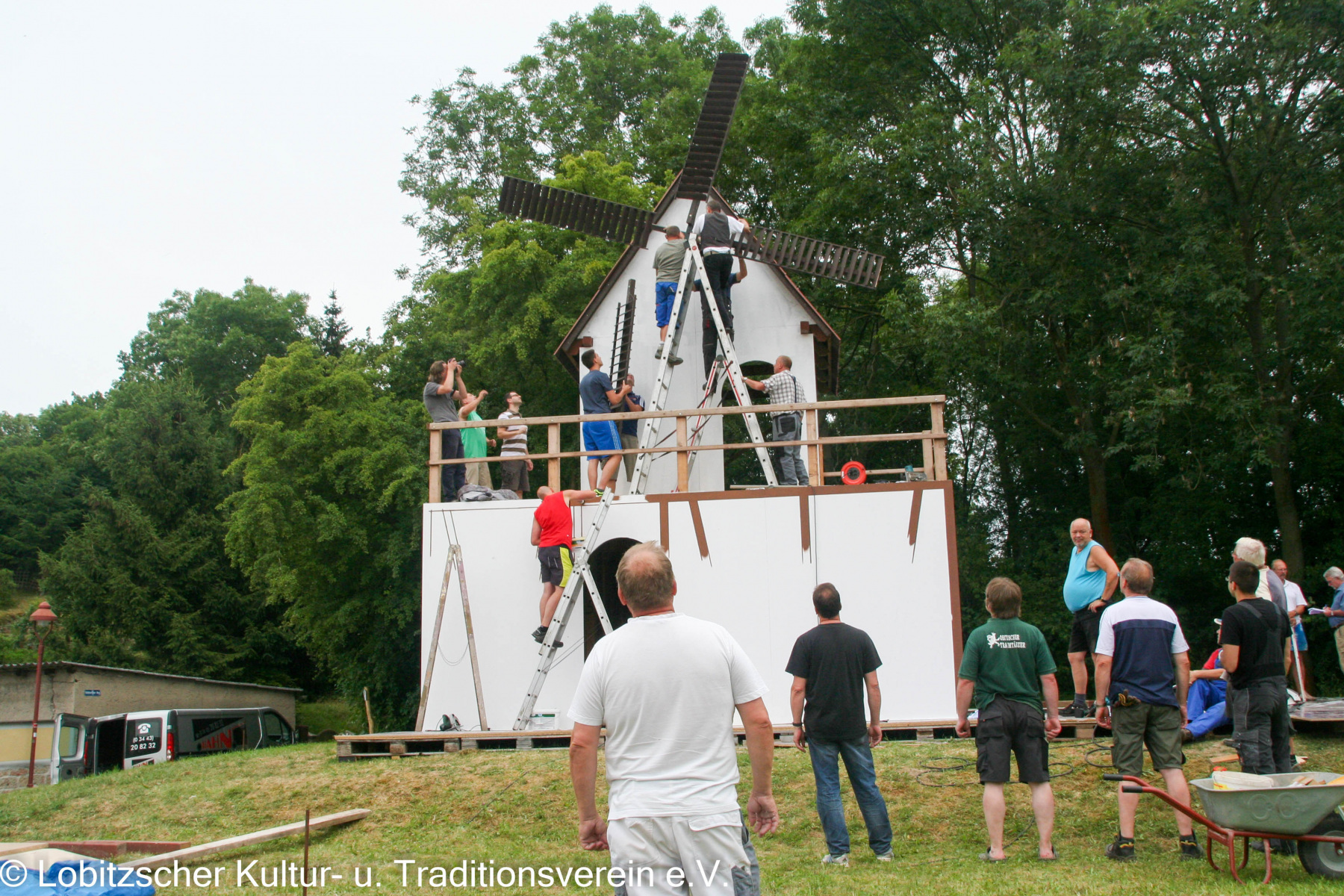 Hier ein kleiner Einblick in den Aufbau der letzten Mühle 2016, wie man schön sehen kann, sind hier viele helfende Hände am Werk